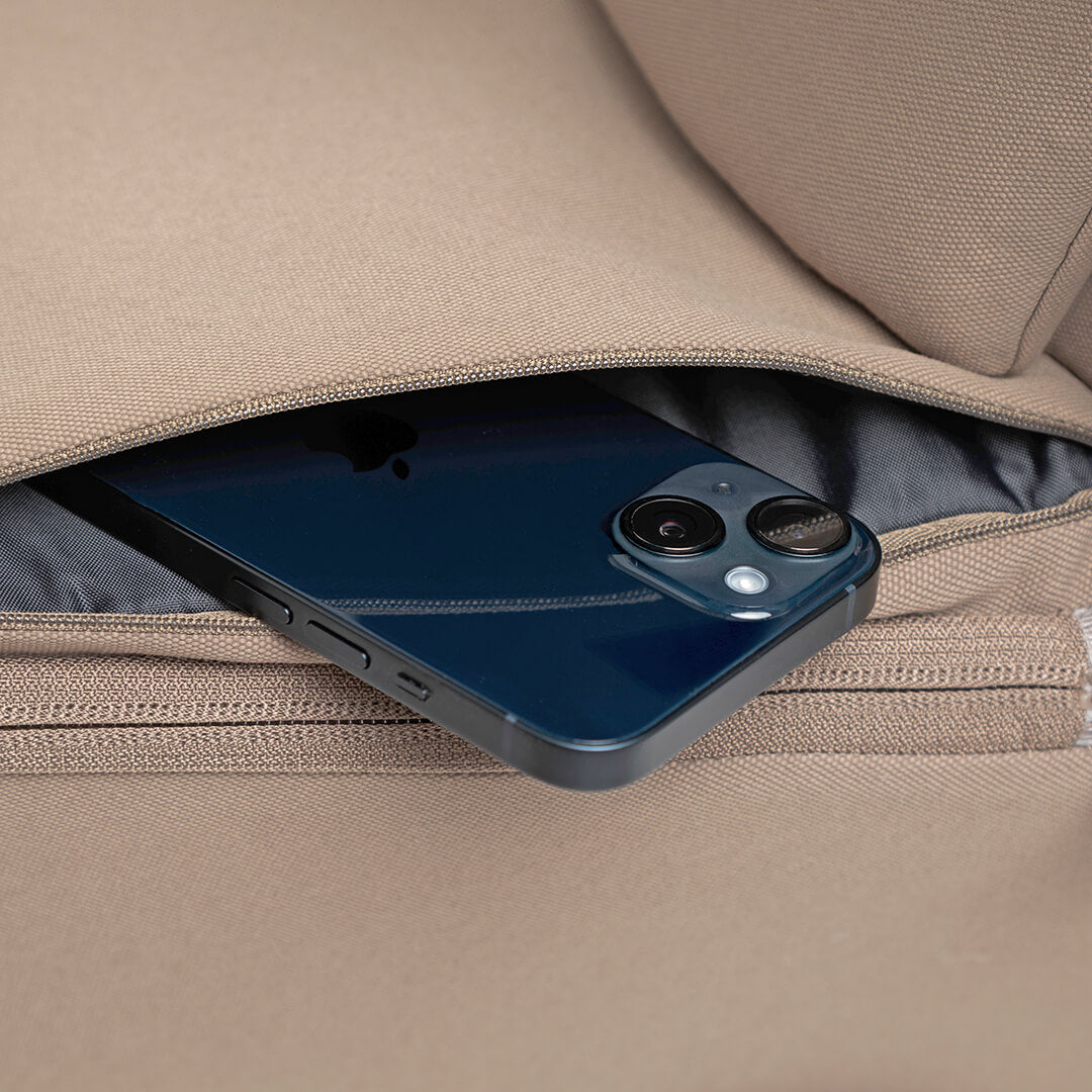 Praktische Details: integrierte Tasche für kleine Gegenstände und separates Schnulleretui.