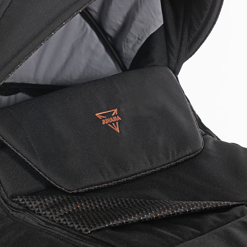 Ein geräumiges verschließbares Gepäckfach bietet genügend Platz für alle notwendigen Utensilien. Die super kuschlige Innenausstattung ist aus 100% Baumwolle gefertigt.